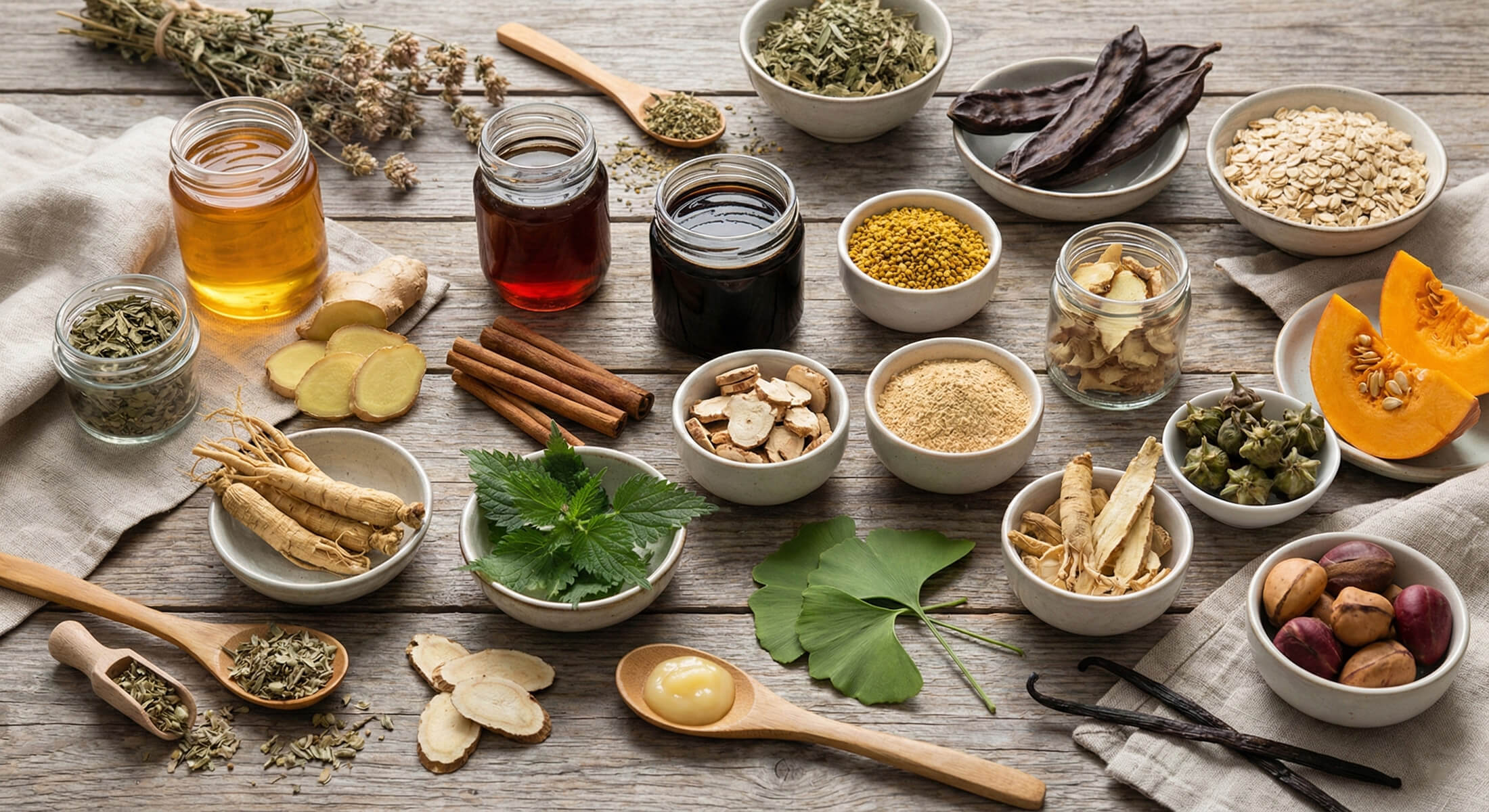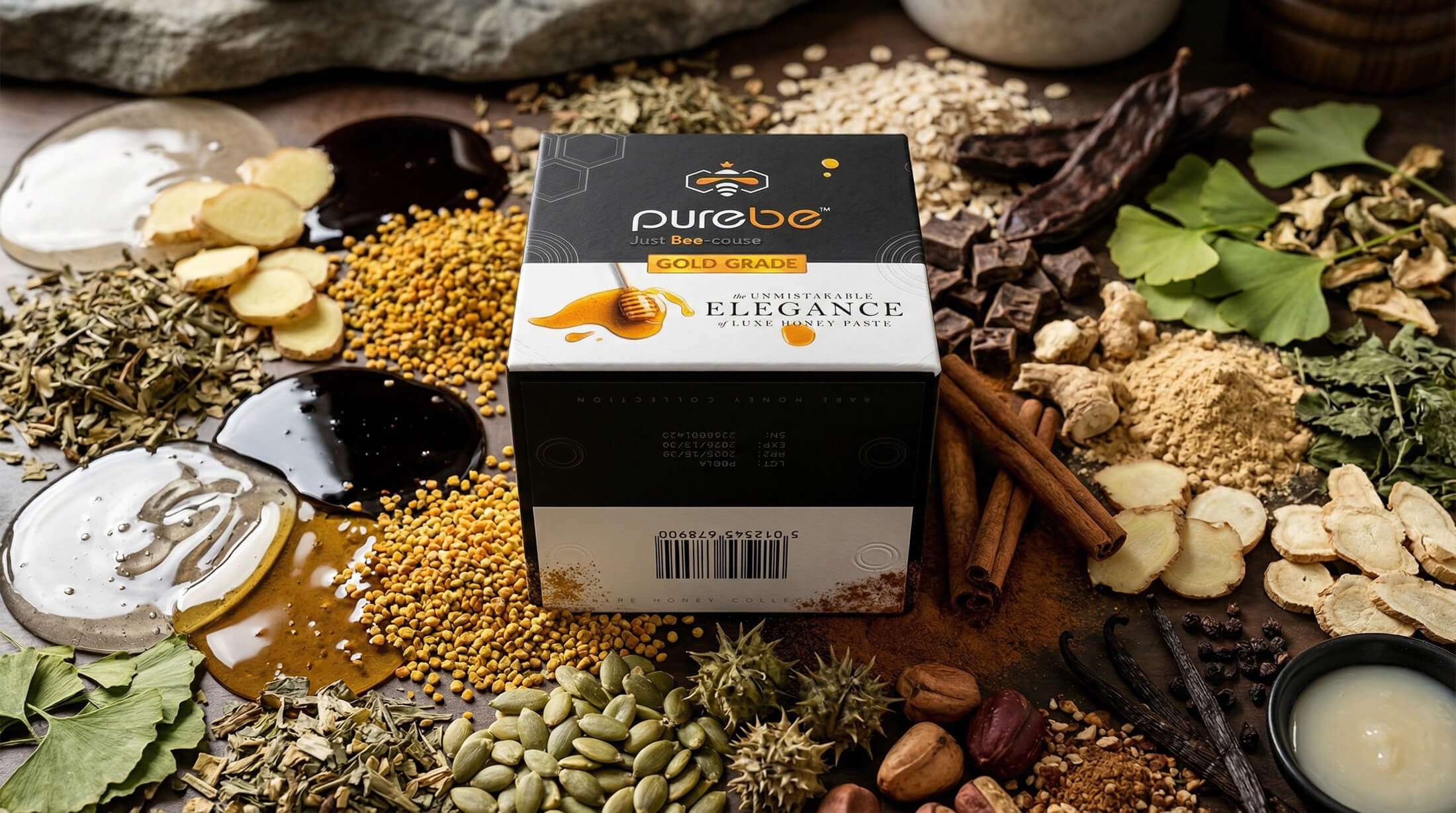 Glucose Syrup, Strain Flower Honey, Mulberry Molasses, Pollen, Goat Weed, Carob, Oat, Ginger, Cinnamon, Lesser Galangal, Maca, American Ginseng, Nettle, Siberian Ginseng, Ginkgo, Ginseng, Pumpkin, Tribulus, Cola Nut, Vanilla Flavor, Royal Jelly.